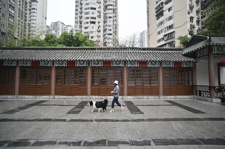 5月11日,南岸区铜元局长江村,原本的棚户区如今大变样,居民在广场遛狗。记者谢智强摄/视觉重庆