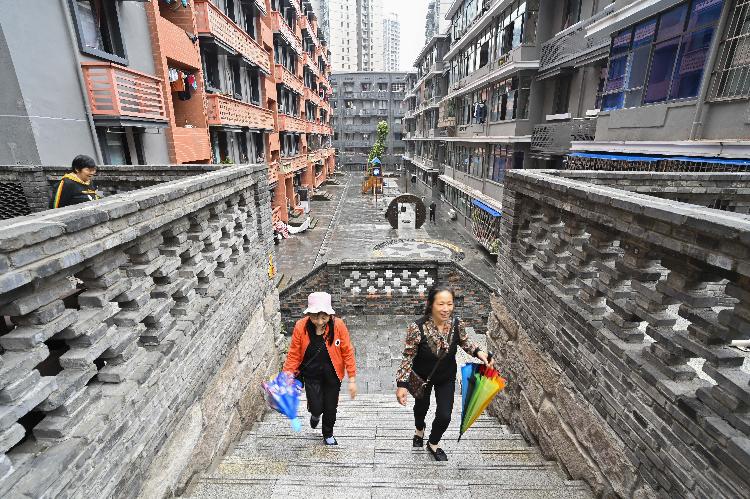 5月11日,南岸区铜元局长江村,原本的棚户区如今大变样,居民行走在宽敞整洁的阶梯上。记者 谢智强 摄/视觉重庆