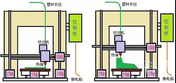 这里我们就要讲一讲 3D 打印机的工作原理,3D 打印机是根据电脑中的数字 3D 模型,通过 “挤出机 “的移动将材料一层一层的” 打印 “出来,直到制造出整个立体产品,而这里所说的” 打印 “,正是通过 3D 打印机的” 挤出机 “的高温,将材料融化并将其挤出到到工作台上或者之前打印的一层上。