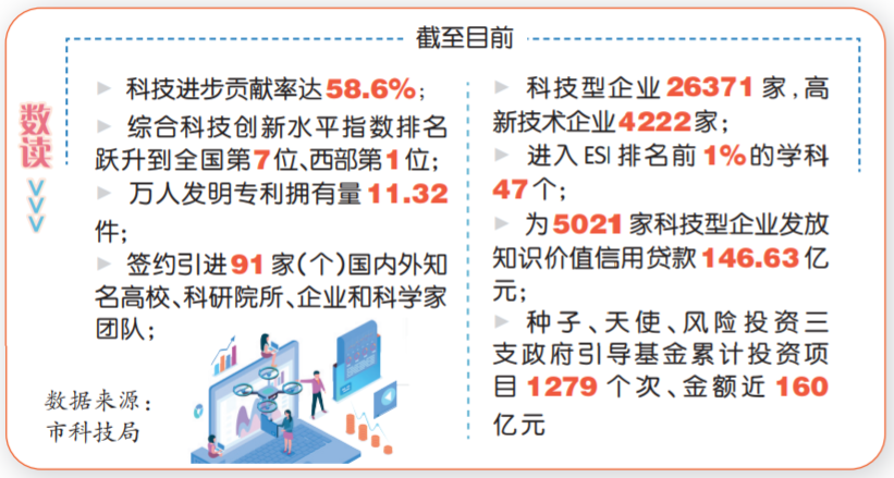 科技进步贡献率达58.6%,综合科技创新水平指数排名跃升到全国第7位、西部第1位;