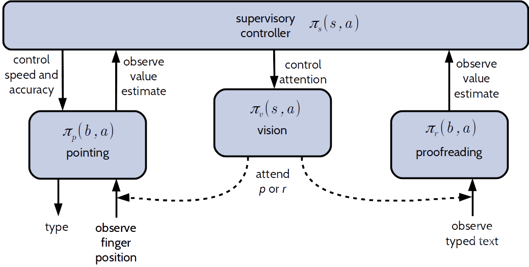 这项研究通过强化学习模型来分析并模拟人类在打字时眼睛和手指的运动方式。