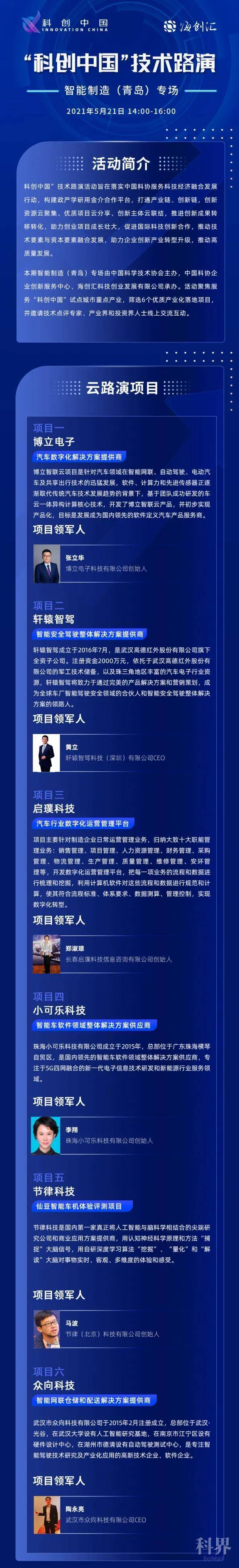 本期智能制造(青岛)专场由中国科学技术协会主办,中国科协企业创新服务中心、海创汇科技创业发展有限公司承办。活动聚焦服务“科创中国”试点城市重点产业,筛选6个优质产业化落地项目,并邀请技术点评专家、产业界和投资界人士线上交流互动。