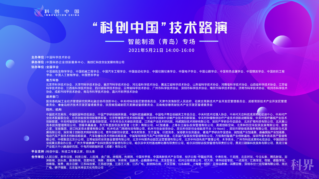 5月21日下午,由中国科学技术协会主办,由中国科协企业创新服务中心、海创汇科技创业发展有限公司承办,2021“科创中国”技术路演——智能制造(青岛)专场活动,6个汽车领域智能制造项目在“科创中国”平台精彩呈现,39.6万人次在线观看技术路演直播。
