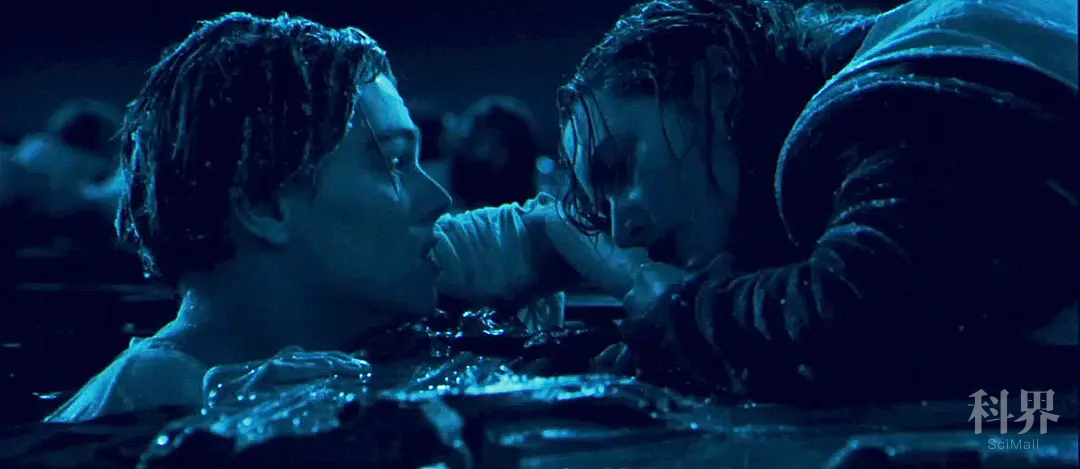 浸泡在冰冷的大海中,人会冻死。丨图片来源:电影TITANIC剧照