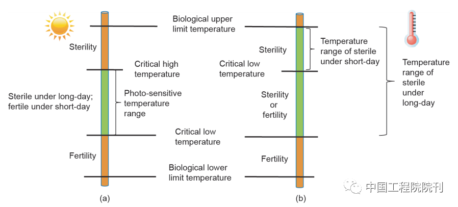 图7 光敏型核(a)和温敏型核(b)不育水稻育性转换的光温作用模式