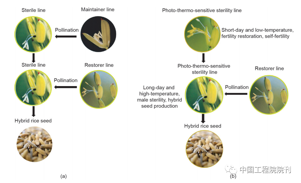 图1 三系法(a)和两系法(b)杂交水稻示意图