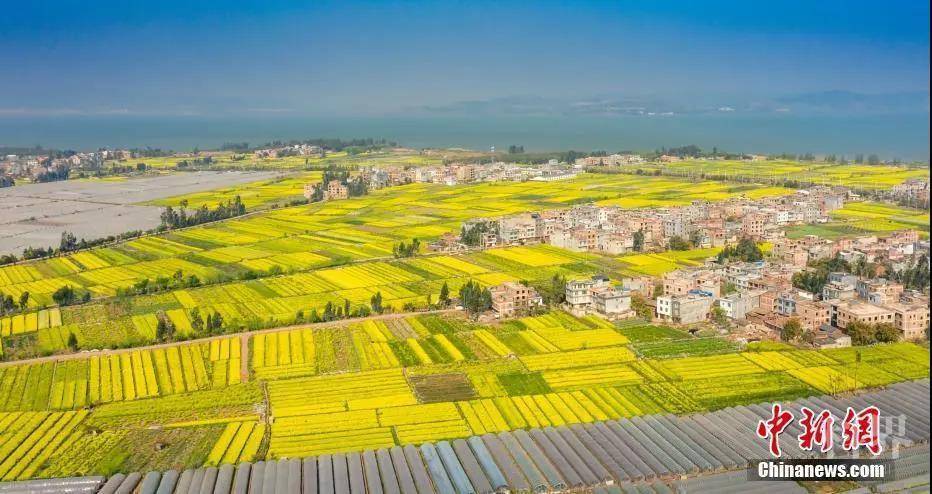资料图:油菜花洒满了滇池南岸。李雪艳 摄