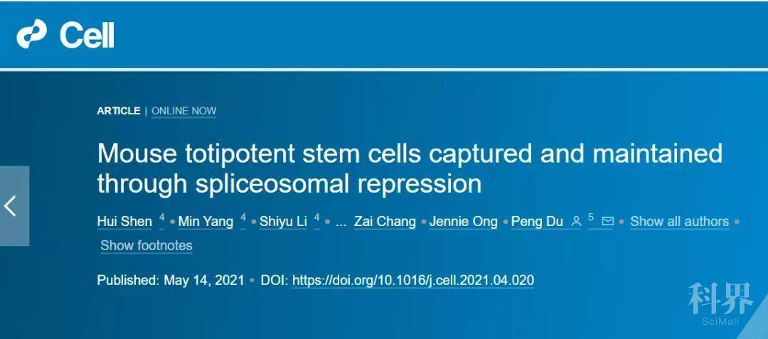 近日,北京大学的研究人员在《Cell》杂志上在线发表了题为“Mouse totipotent stem cells captured and maintained throughspliceosomal repression”的文章,发现剪接体抑制能够产生小鼠全能干细胞。