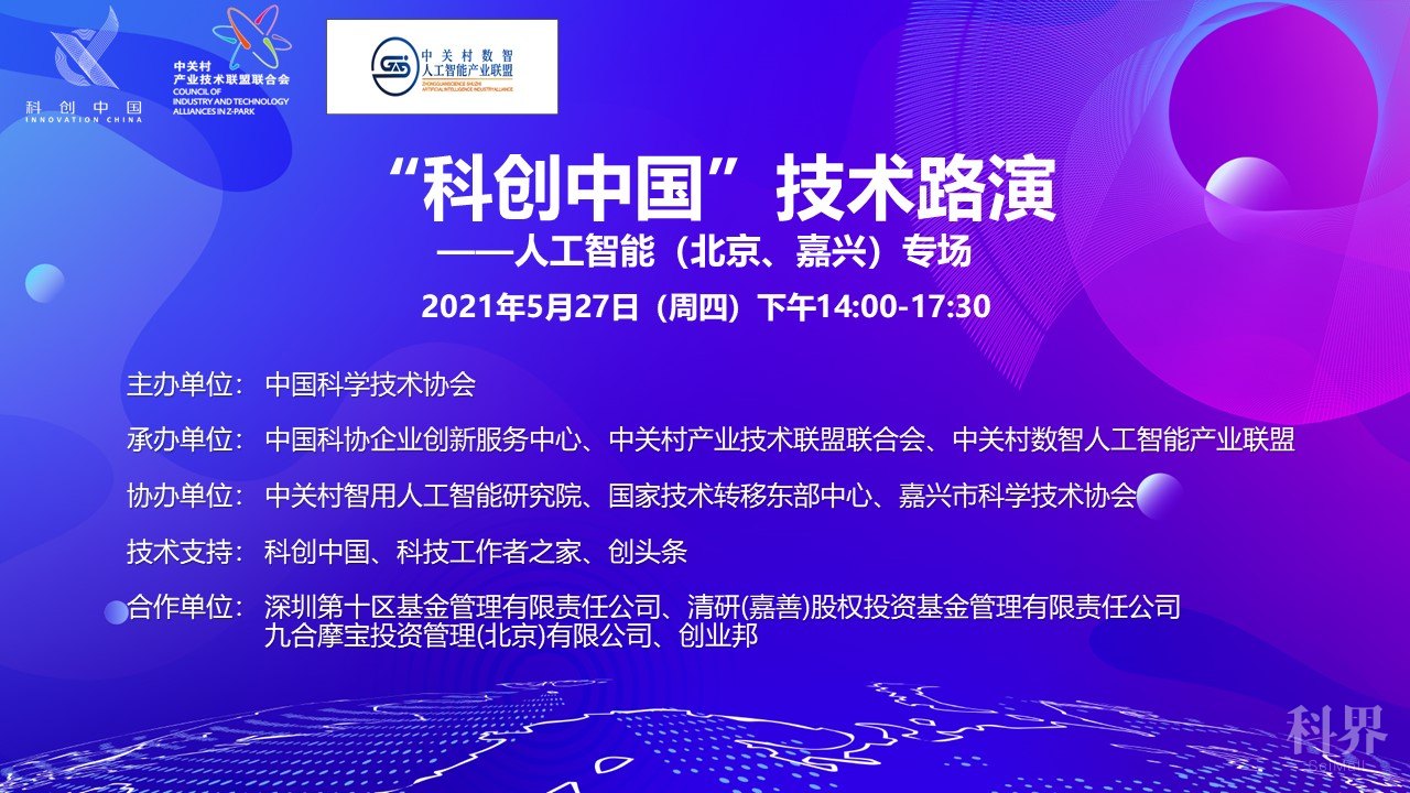 5月27日下午,由中国科学技术协会主办,中国科协企业创新服务中心、中关村产业技术联盟联合会、中关村数智人工智能产业联盟承办,嘉兴市科学技术协会共同协办的2021“科创中国”技术路演——人工智能(北京、嘉兴)专场活动线上举行,中关村数智人工智能产业联盟秘书长贾昊主持本期技术路演,通过“科创中国”、科技工作者之家、创头条、创业邦等平台宣传推介。