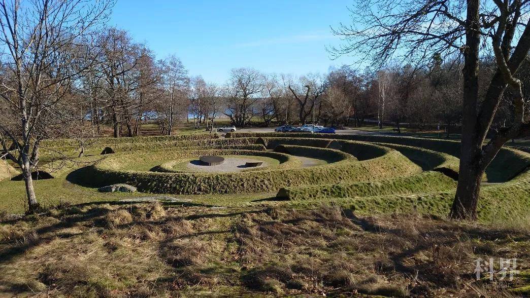 受爱因斯坦关于引力波的猜想以及LIGO观测结果的启发,2017年丹麦80后女性艺术家Lea Porsager创作了大型地球艺术作品“引力涟漪”(图12),以纪念2004年底在东南亚印度洋海啸中的遇难者,其中有543位瑞典游客。这件作品由斯德哥尔摩狩猎南岛上许多覆盖着花朵和草皮的长短不一的弧形堤坝组成,形状来自Fibonacci黄金双螺旋,截面是波动函数。作品中心的两个青铜雕塑表示量子缠绕,大的一个雕塑上面镌刻着遇难者的名字。其整体像一个迷宫,将引发海啸的地震波与宇宙中的引力波结合在一起,体现了人类的脆弱以及对于我们生存的宇宙的好奇心。