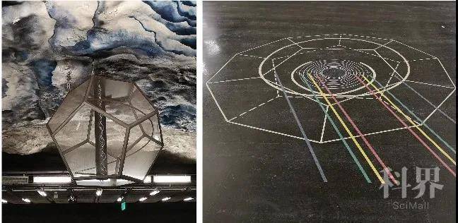 图11. (左)KTH站台悬挂的正十二面体;(右)十二面体的投影(点击看大图)