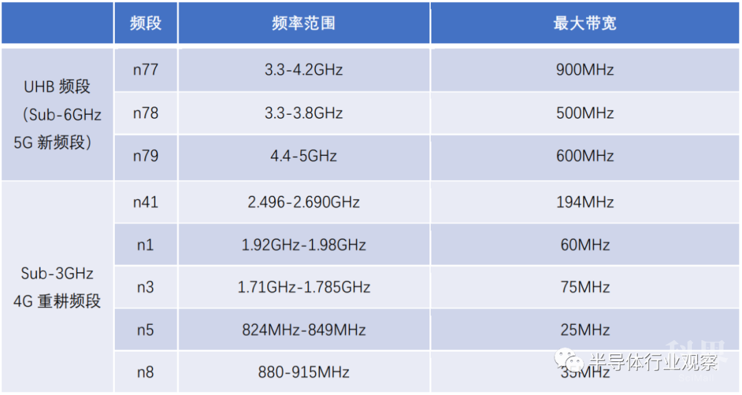 1、位于Sub-3GHz的n41/n3/n1/n8/n5等,是在原来4G频段上做的重耕,带宽窄。