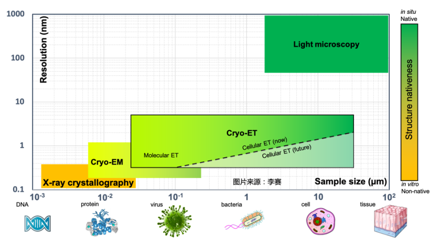 图2. cryo-ET是一种高分辨、跨尺度的原位显微成像方法,应用面非常广阔(图:李赛)