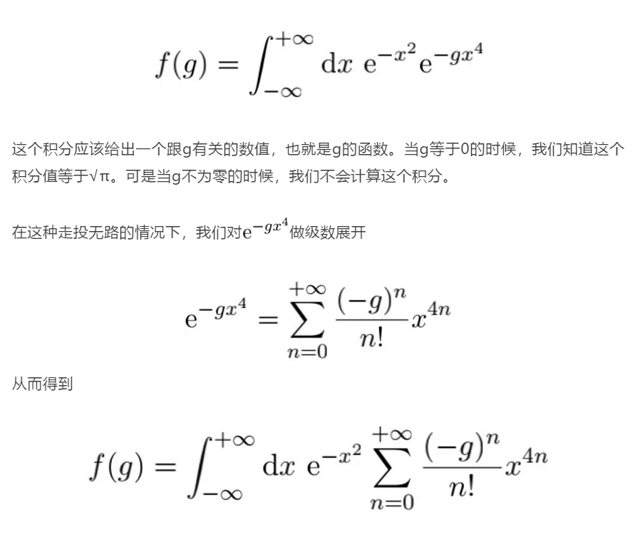 下面我用一个简单的例子来解释一下,标准模型级数展开(微扰展开) 像是什么样子。我们考虑下面这个积分