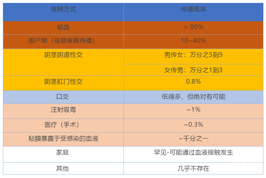 无保护下,与感染状况未知的高危人员发生上图中所示的性行为,则应视为高危性行为。图4:行为方式及HIV传播风险丨来源:BUMC