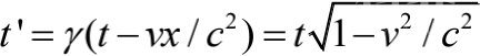 设想一个钟以速度v运动。在静止坐标系看来,在时间t以后,其位置在 x=vt 处。将 x=vt带入洛伦兹变换第一式,得