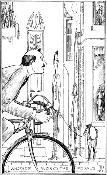 图1. 在骑自行车的Mr. Tompkins的眼中,世界是在自行车运行的方向上是压缩的