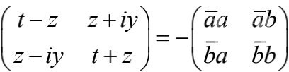 对于运动物体由洛伦兹变换带来的视觉问题,彭罗斯以运动的球给观察者的视觉仍是个圆为例,他的数学处理用到了射影几何以及用两分量旋量 (a, b) 来表示时空坐标,