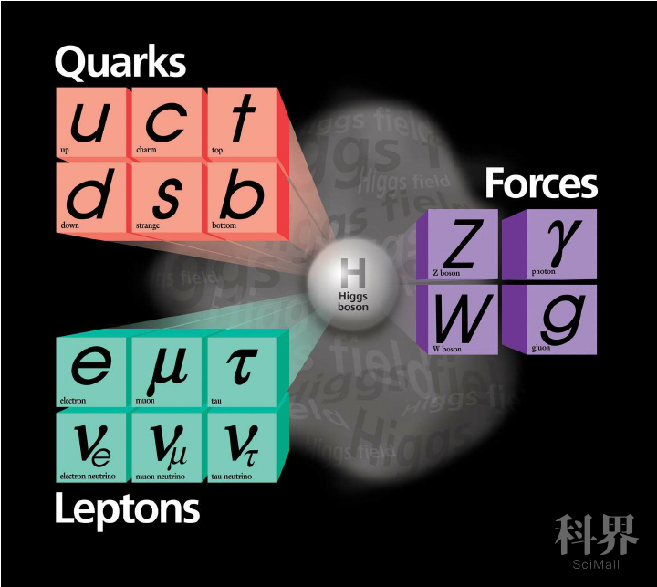 粒子物理学标准模型中的17种基本粒子。准粒子不属于基本粒子。| Fermilab Visual Media Services.