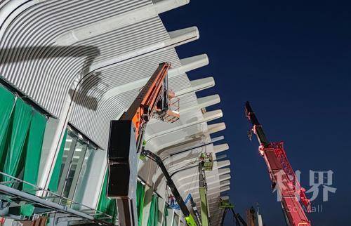 2021年6月12日,在位于两江新区的礼嘉智慧公园的礼嘉智慧馆项目,工人正在进行外观装饰。项目方供图