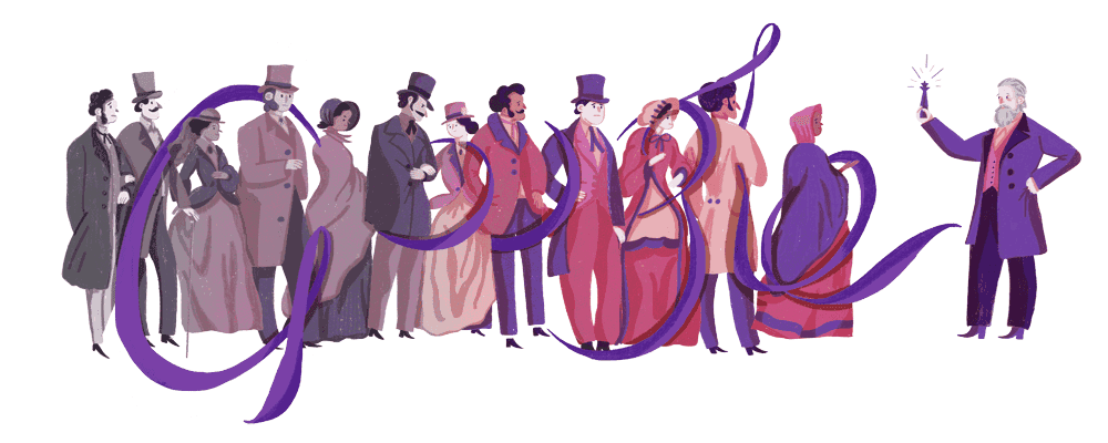 图1. 2018年3月12日,Perkin诞辰180年的Google Doodle。