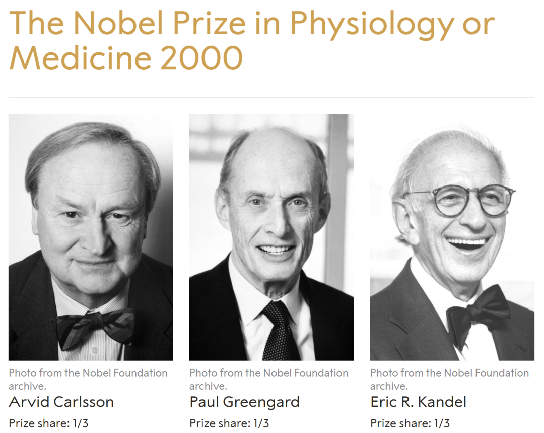 图7. 2000年诺贝尔生理学或医学奖三位得主。