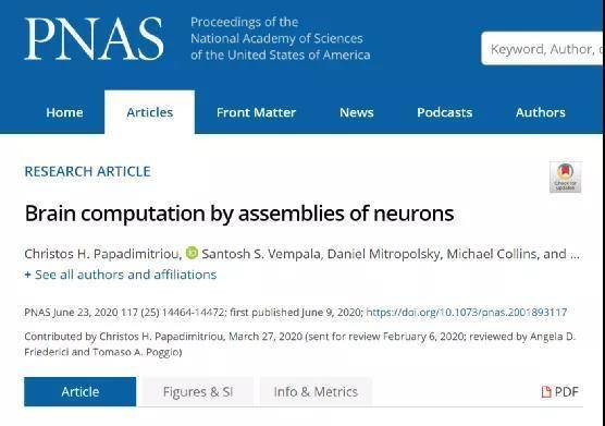 Papadimitriou 与一组来自不同学术机构的科学家一起,在去年发表在同行评议的科学期刊《美国国家科学院院刊》(PNAS, Proceedings of the National Academy of Sciences)上的一篇论文中详细阐述了这一模型。论文名为 Brain computation by assemblies of neurons。