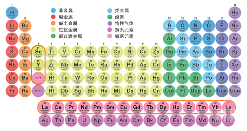 橙色线圈出的元素即是稀土元素