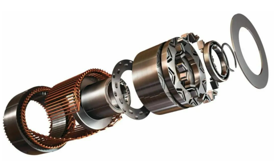 通用汽车公司展示的电动汽车电机的部件分解图,稀土磁铁是核心部件。