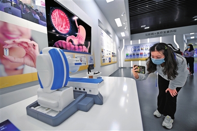 在银川·中关村协同创新展示中心展出的磁控胶囊内镜检查设备。