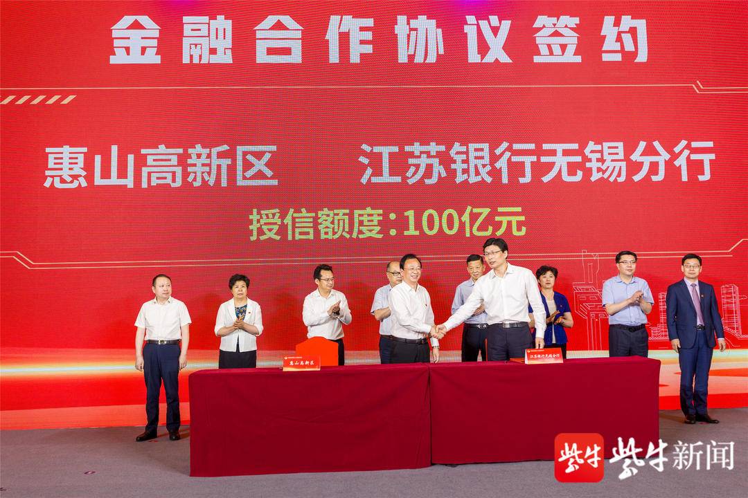 6月25日上午,江苏省惠山高新区(筹)(以下称:惠山高新区)揭牌仪式暨高质量发展大会在无锡市惠山区洛社镇举行,这也是无锡唯一的省级高新区。现场,一批重大项目集中签约,总投资超100亿元;5家银行联合授信超750亿元;产业基金10亿元;12只重大项目开工建设。
