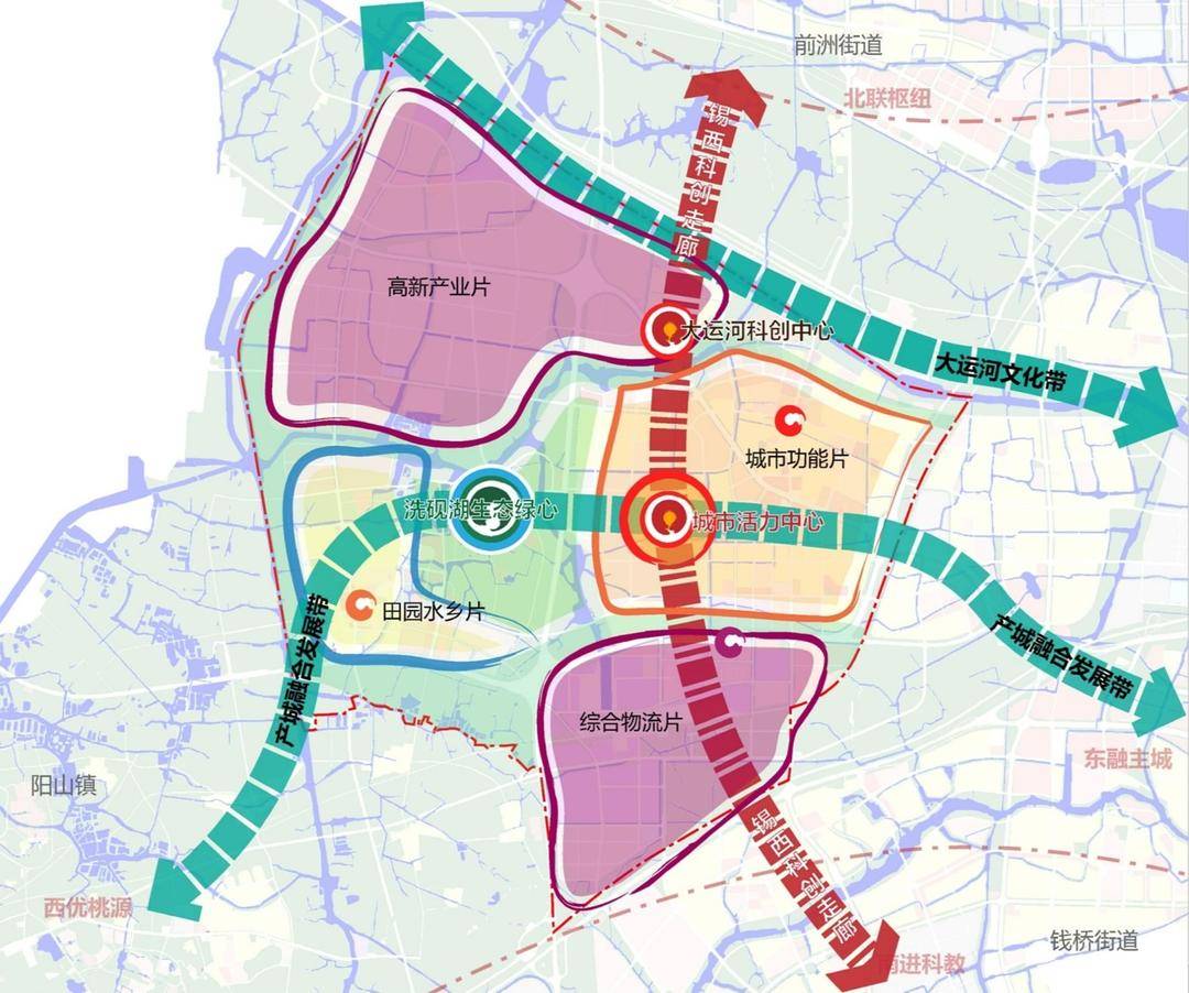 2021年1月9日,惠山高新区获江苏省政府批准筹建,高新区建设驶入快车道。根据规划,惠山高新区(筹)将紧紧围绕“一年成名、两年成型、三年创成”的目标要求,打造“一廊两带、三心四片”的空间结构。“一廊”即锡西科创走廊。“两带”即大运河文化带、产城融合发展带。“三心”即城市活力中心、洗砚湖生态绿心、大运河科创中心。“四片”即高新产业片、田园水乡片、综合物流片、城市功能片。