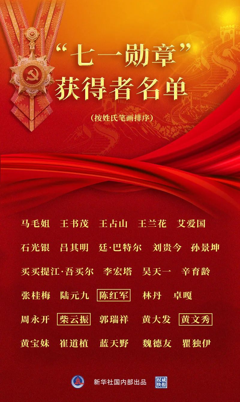 在这29位“七一勋章”的获得者中,有3位是科研领域的杰出贡献者。