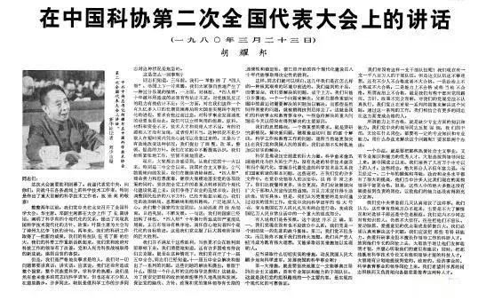 胡耀邦在中国科协二大上的讲话 来源:人民日报