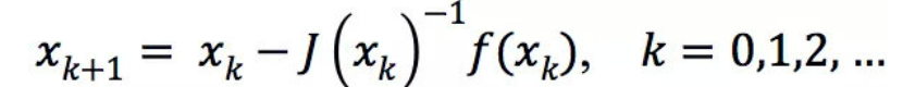 把一个最一般的非线性方程组写成算子方程 f(x) = 0 并假定变元 x 是个n 维向量,而 f(x) 的值是个 m 维向量。如果这个方程组是正方形,也就是方程个数 m 等于变量个数 n, 那么当今教科书中的牛顿法就是辛普森的版本: