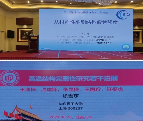 郭万林院士与涂善东院士受邀分别作“从材料性能到结构疲劳强度”与“高温结构完整性研究若干进展”的大会邀请报告。河北工业大学副校长胡宁教授、东北大学谢里阳教授、江苏大学机械工程学院院长鲁金忠教授以及江南大学赵军华教授分别作了“结构轻量化材料的力学性能、加工过程和结构设计的研究”、“强度问题与概率方法”、“高端复杂构件激光冲击强化关键技术及典型应用”以及“宏-微-纳结构强度及失效机制的多尺度理论与应用”的大会报告。