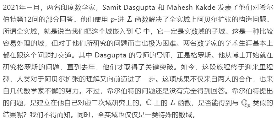 但是对希尔伯特第12问本身而言,进展仍然极为缓慢,还需要新的思想、新的工具。