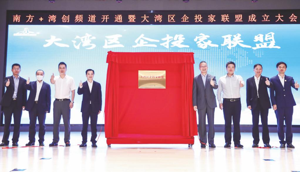 会上还举行大湾区企投家联盟成立仪式。南方报业传媒集团(南方日报社)副社长、南方+客户端总裁谭仕龙,广州国资发展控股公司党委书记、董事长王海滨,广州市科学技术局副巡视员王洪成,广州市科学技术局科技金融处处长钟伟彬,广州洁特生物过滤股份有限公司董事长袁建华,广东腐蚀科学与技术创新研究院常务副院长冯埃生,苏交科集团股份有限公司投资运营总经理孙旻,大湾区科技创新服务中心董事长兼总经理秦海鸥一起上台揭牌,共同见证“大湾区企投家联盟”成立。