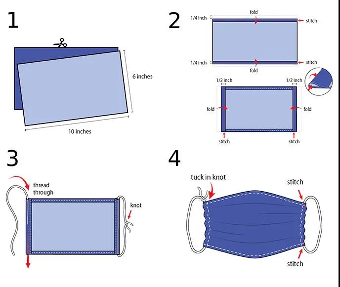 2020年,美国疾病预防和控制中心(Centers for Disease Control and Prevention,以下简称CDC)曾在官网上示范并教授3种方法自制简易布口罩。为了增强防护效果,还建议在自制口罩内再佩戴一只一次性外科口罩。