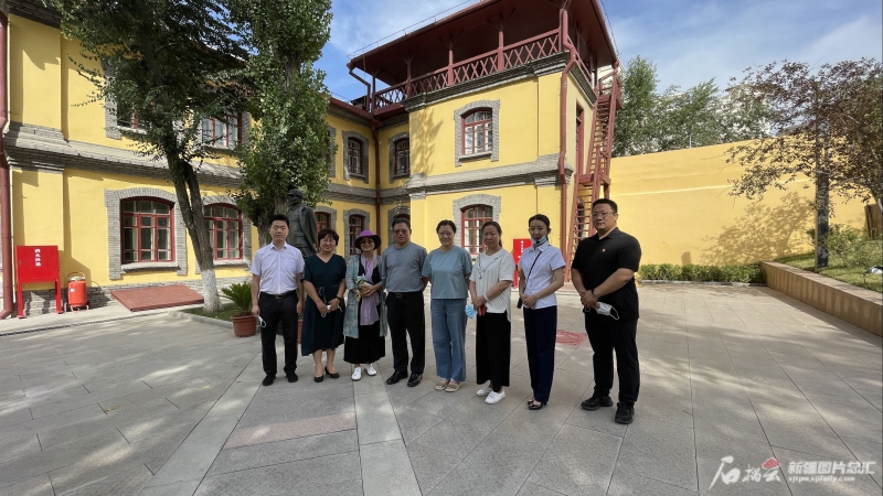 7月12日,2021年“科创中国”院士专家新疆行活动启动,图为抵达乌鲁木齐的院士专家参观八路军驻新疆办事处纪念馆后合影留念。石榴云/新疆日报记者吕伊晗摄