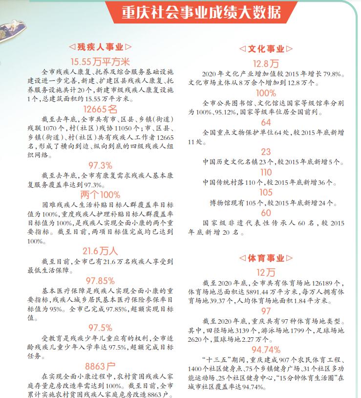 近年来,重庆坚持从保障和改善群众福祉入手,促进社会公正,着力引导社会领域服务业发展,深化重点领域改革创新,社会事业改革正在释放活力,人民享有更多发展成果。