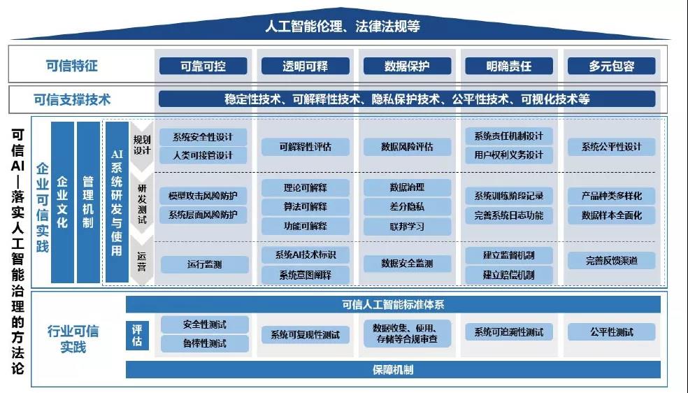 此外,《白皮书》中提到:可信人工智能已经不再仅仅局限于对人工智能技术、产品和服务本身状态的界定,而是逐步扩展至一套体系化的方法论,涉及到如何构造“可信”人工智能的方方面面。