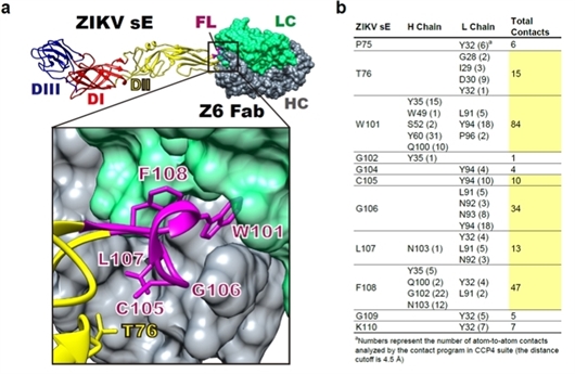 他们通过同源替换的方法,将寨卡E蛋白的FL,替换成黄病毒属中进化关系最远的昆虫特异性黄病毒的同源序列,从而改变了FL表位上结合ADE抗体的3个关键氨基酸。