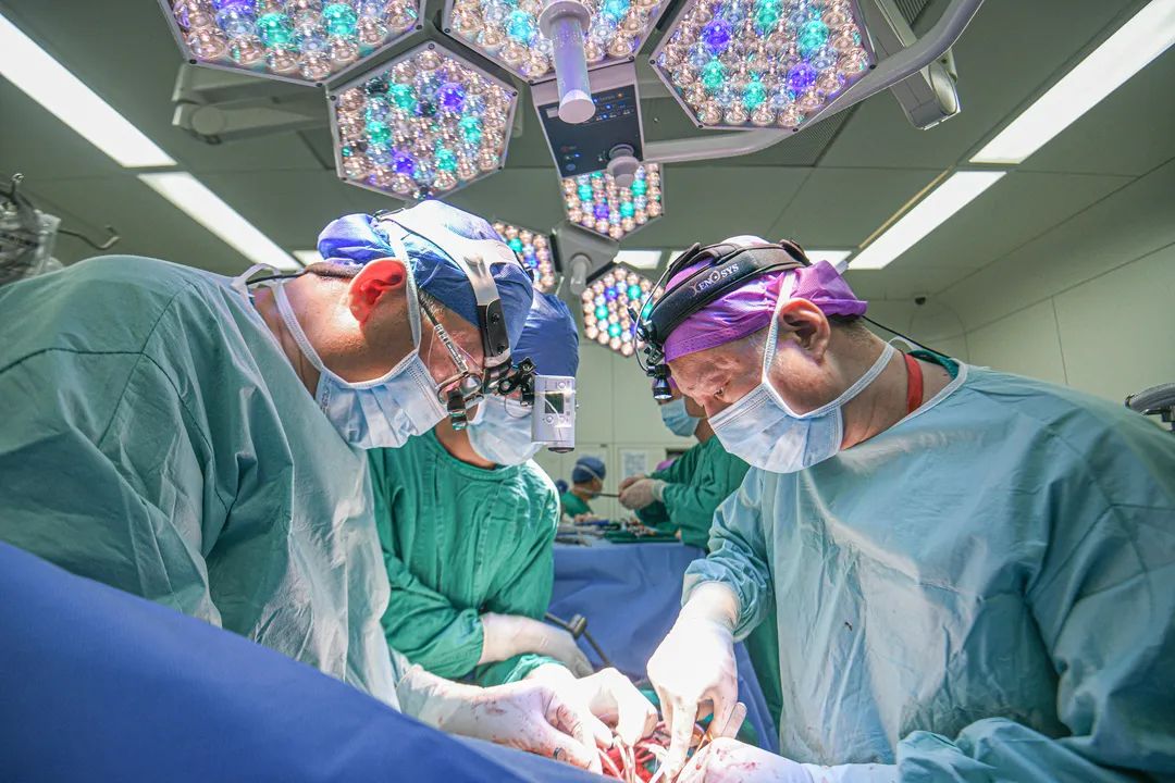 ▲世界首例“无缺血”心脏移植手术进行中