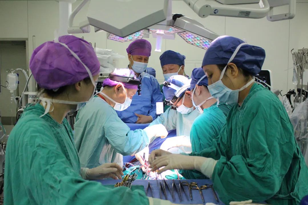 全程“无缺血+不停跳”展现强大器官维护硬实力6月26日下午2时,福伯和受体捐赠者同时进入了手术间。福伯首先接受了漂浮导管检查,经过测量,福伯的肺动脉压力虽然仍偏高,但已经下降到可以接受手术的程度。心脏外科吴钟凯教授、梁孟亚副教授开始切除福伯仅能蠕动的巨大病变心脏。另一边,心脏外科殷胜利教授、熊迈副教授和刘云奇医生,潘鹏飞、钟颖护士等组成的供体获取组,有条不紊地获取供体心脏,探查之后发现供心状态良好,强壮有力,两间手术室,40余名医护人员,投入到了一场前所未有的“换心大战”中。