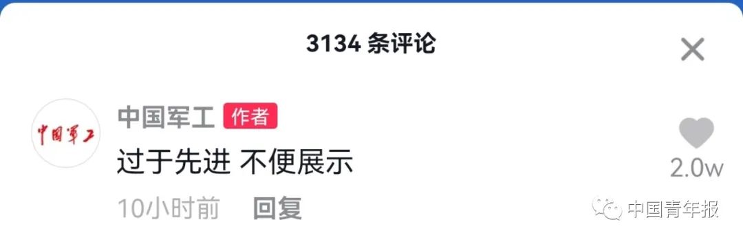 对此,“中国军工”在评论区称:“过于先进 不便展示”。