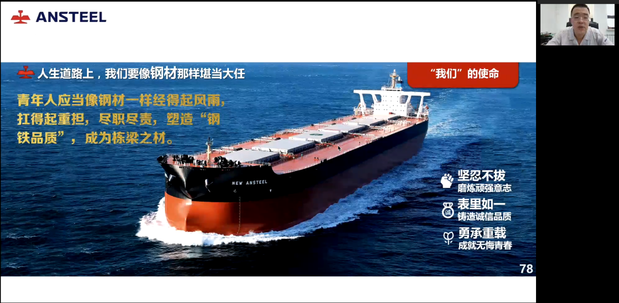 林利博士对鞍钢70年来的历史沿革和研究员的基本概况进行了简单介绍,对鞍钢在汽车用钢、桥梁用钢、船舶用钢、核电用钢、油气用钢、列车用钢等多个领域的创新研究成果进行展示。尤其是对汽车用钢先期介入(EVI)进行了详细介绍,对EVI意义、EVI目标、EVI主要关注点、EVI技术实施方法、EVI核心技术分别进行了细致的讲解。最后,林利博士结合自身在汽车用钢深耕多年的实际工作经验,对个人成长经历进行了分享,提出了个人发展的四个阶段:学习、实习、研究以及参与管理,对青年人才在汽车用钢领域的发展提出若干建议。林利博士表示,青年人要像炼钢过程一样,做到追求卓越、精益求精、开拓进取、持之以恒,在不断的磨练中完善自我,在不断执着与追求中成就一番事业;青年人才应当像钢材一样经得起风雨,扛得起重担,尽职尽责,塑造“钢铁品质”,成为栋梁之材。