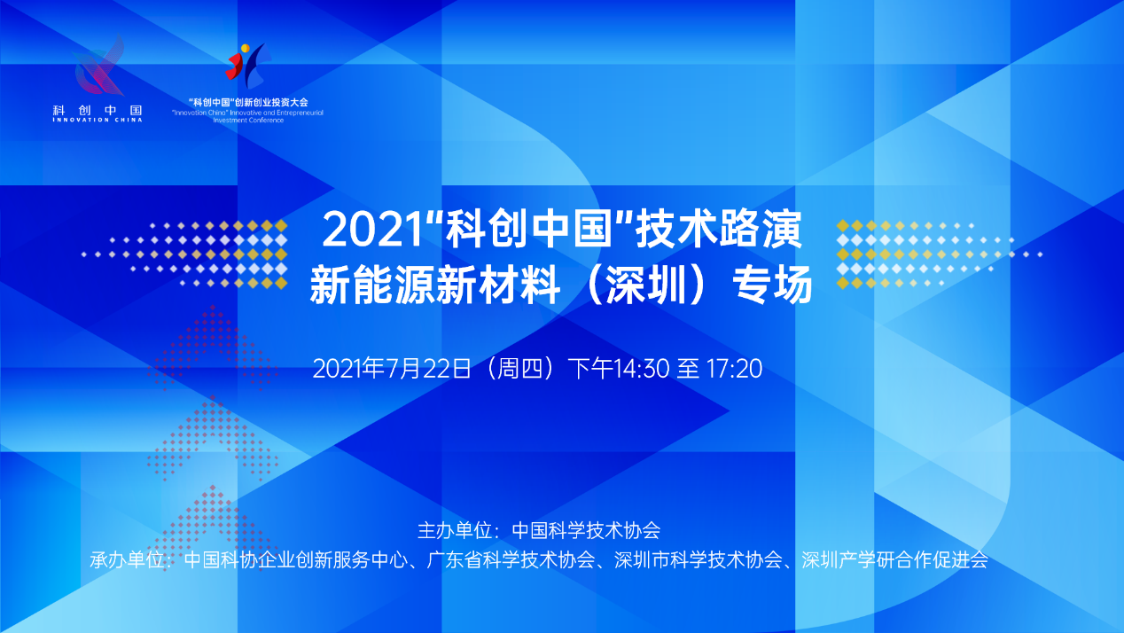 7月22日下午,由中国科学技术协会主办,中国科协企业创新服务中心、广东省科学技术协会、深圳市科学技术协会、深圳产学研合作促进会承办,2021“科创中国”技术路演——新能源新材料(深圳)专场活动通过“科创中国”、科技工作者之家、凤岐茶社等平台线下+线上同步推介,12.9万人次在线观看技术路演直播。