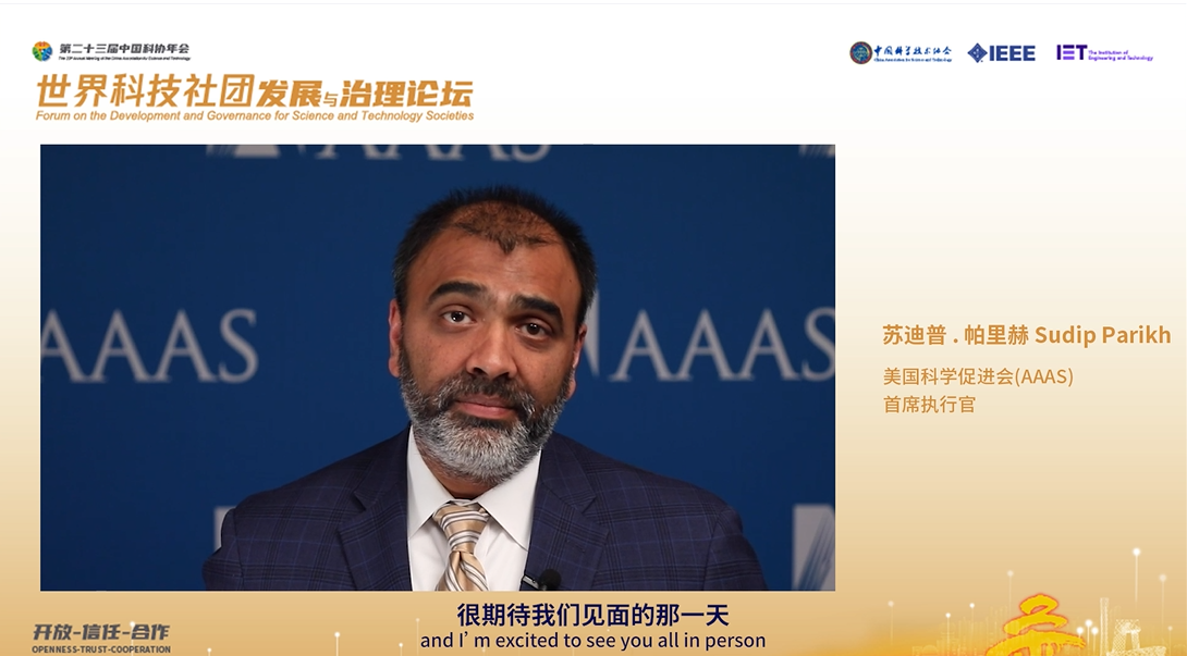 中国科协党组成员、书记处书记王进展主持开幕式。美国科学促进会首席执行官苏迪普•帕里赫在致辞中提出,应对全球性问题需要大力发展科学技术,这是科技社团应对共同挑战的共识理念。信任是任何关系的基础要素,在国家内部和国家之间,我们要共同加强对科学的信任。美国和中国的科学家之间的同行关系对世界的未来至关重要,希望在诚信和尊重彼此及科学规范的基础上建立起信任关系,相互合作,为决策者带来解决方案。