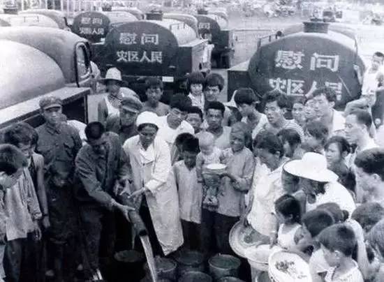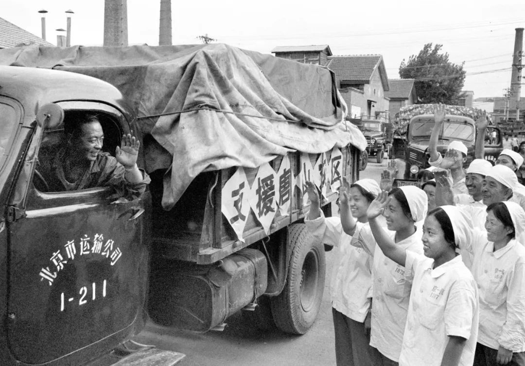 △北京市第一食品厂的工人为灾区群众生产了大量的面包、饼干,源源不断运往唐山地震灾区。